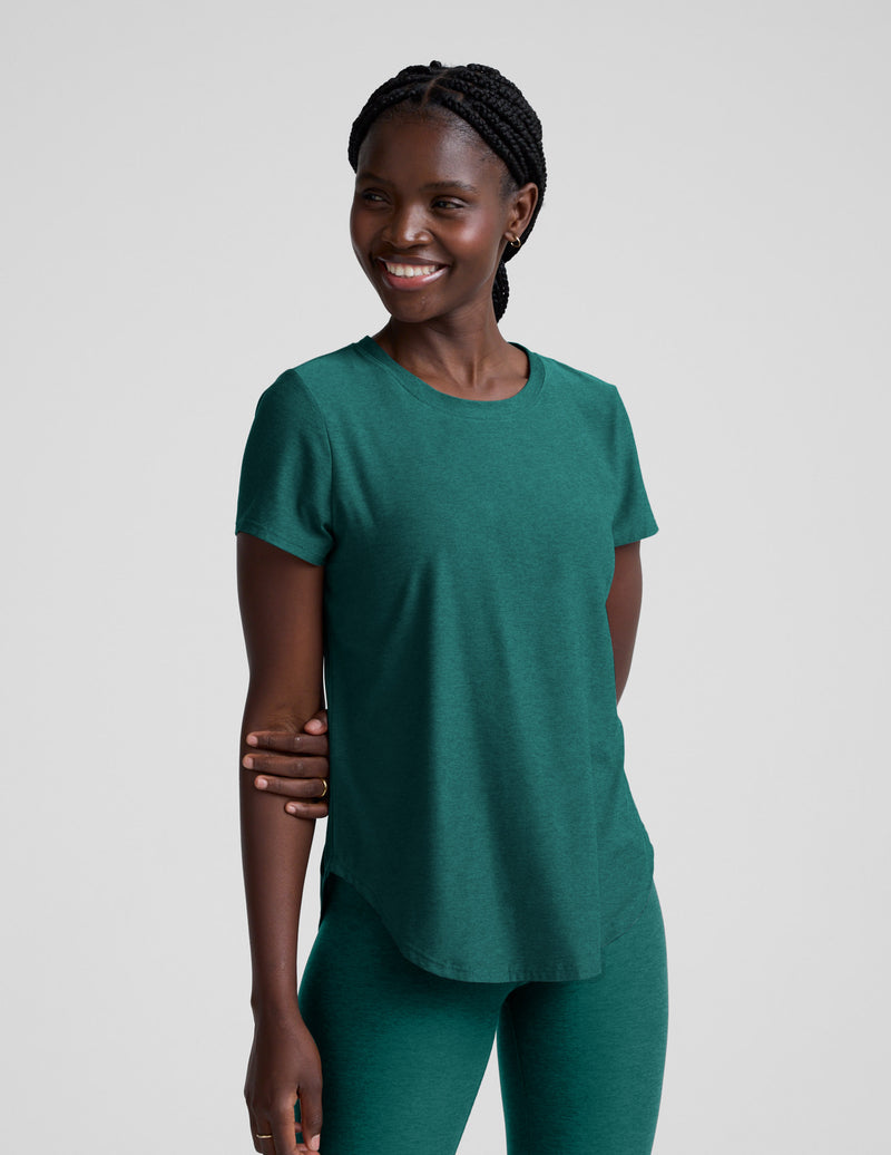 A relaxed fit tee made from our incredibly soft and lightweight, Featherweight Spacedye fabric. Complete with a curved hem, short sleeves, and long length for more coverage. Wear it with your favorite leggings or jeans for everyday style.