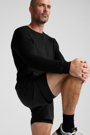 A man wears maroon Pivotal 2.0 Men's Lined Short 7