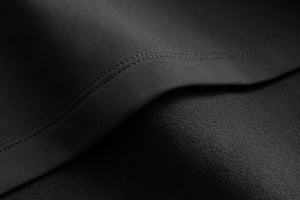close-up of black fabric with stitching detail.