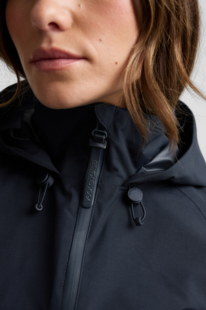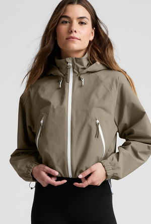You're on your way. The Rain Or Shine Adjustable Hooded Jacket is a chic outer layer with an adjustable bungee cord with a boxy fit to wear to the studio, office, and everywhere in between.