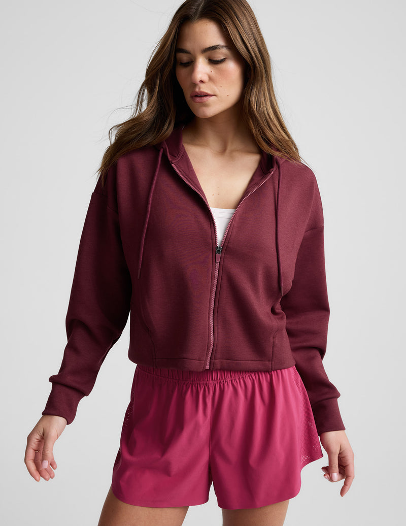 Level up your sweats. Slip on the SoftSpring Full-Zip Hooded Jacket that has a dense, springy texture and a boxy fit for extra coziness.