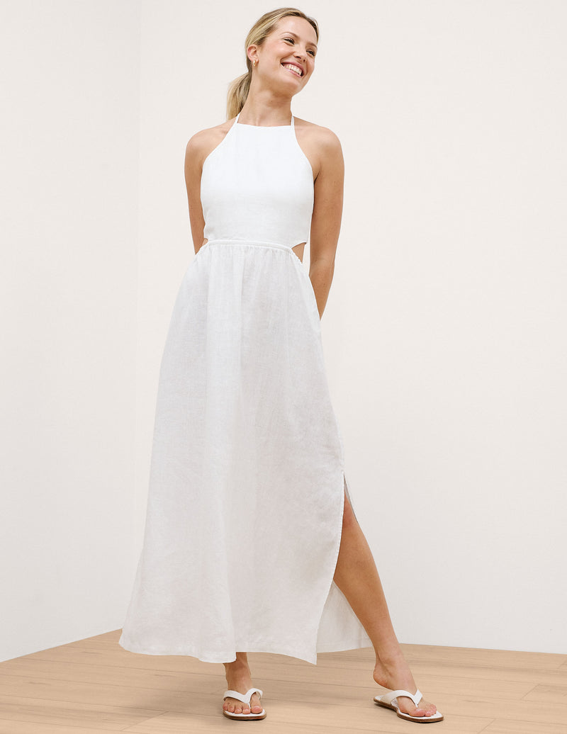 Easy, breezy. Slip on the SoftWash Linen Halter Dress with delicate details like side cut out details and back smocking.